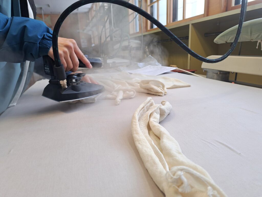 2025.12.05 UTOスタッフブログ 冬の足音 昨日の降雪からあっという間にあたりは雪景色に変わりました。 アイロンから出る蒸気をいつもより色濃く感じながら今日もモノづくりを進めます。 岩手工場 たまざわ