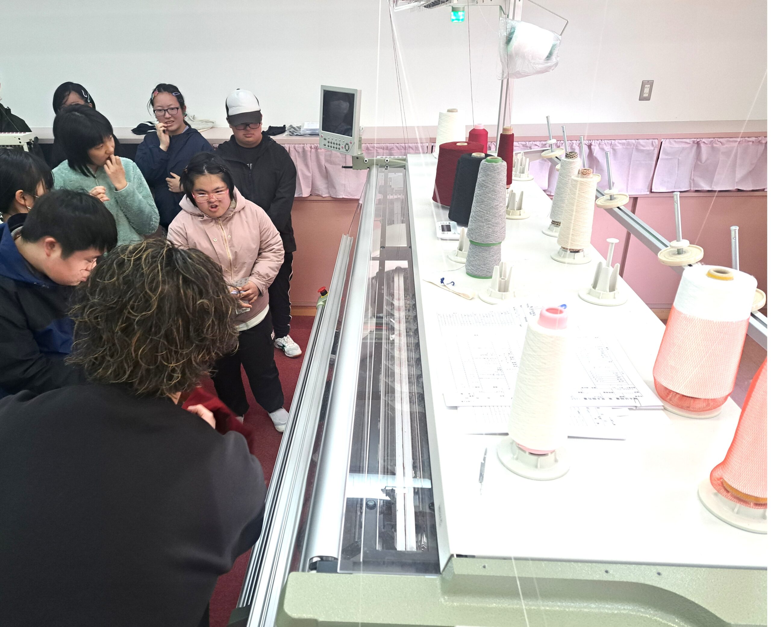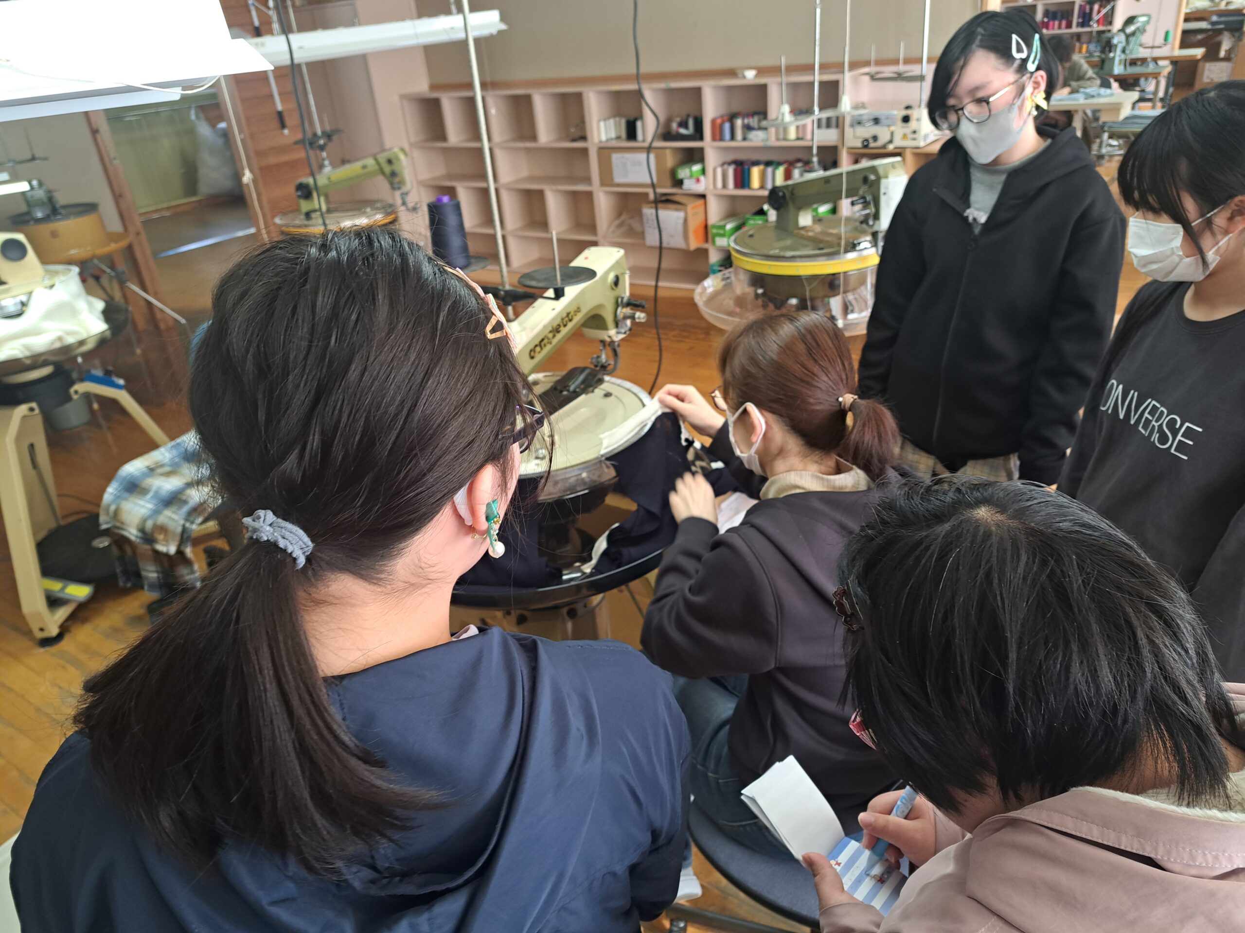 当日は、糸から製品へと仕上がるまでの製造工程をご紹介し、製造体験も行っていただきながら、実際のものづくりの現場をご覧いただきました。